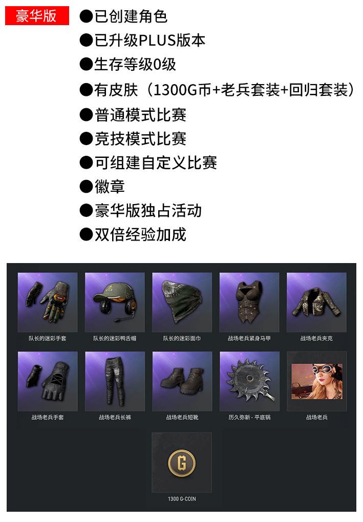 3)兑换PUBG豪华版账号时,您将获得以下道具: