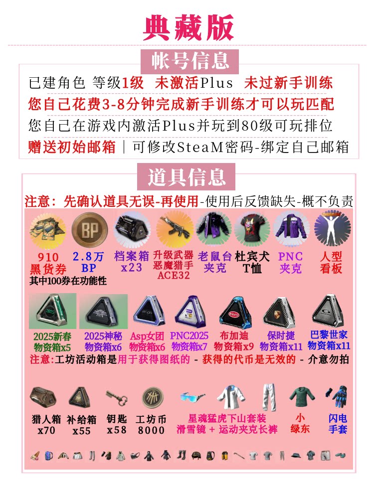 1.本商品为Steam已入库PUBG正版账号