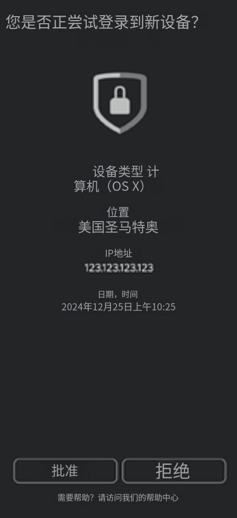 3.当有新设备尝试登录时,会出现弹窗提示: