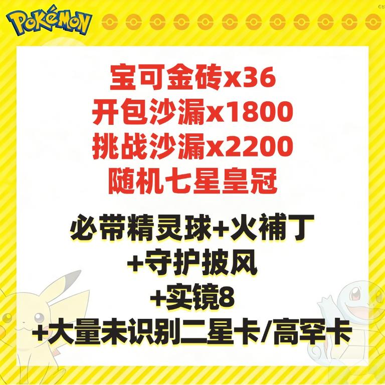 自抽组合包51:2500【40宝可金砖+5000开包沙漏+2500挑战沙漏】必带皇冠卡 神奇糖果+随机实镜