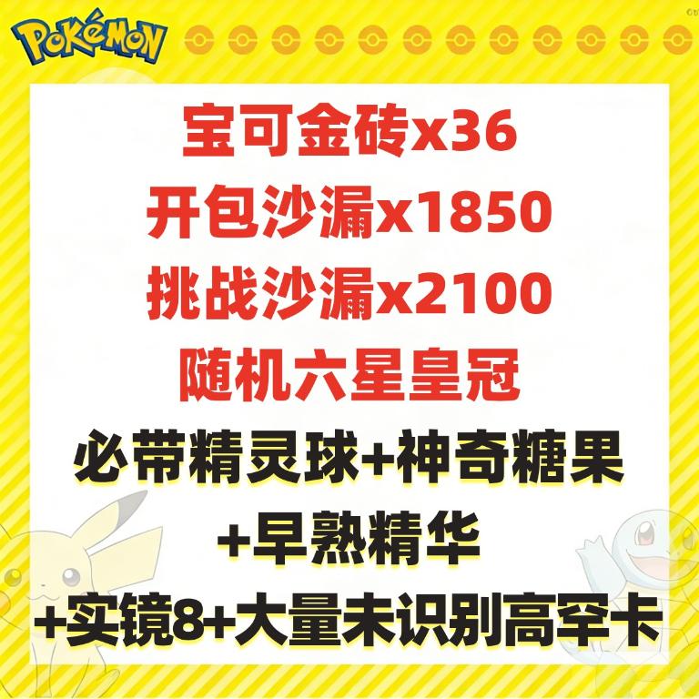 自抽组合包52:250040宝可金砖+5000开包沙漏+2500挑战沙漏】必带皇冠卡 神奇糖果  精灵球+随机实镜
