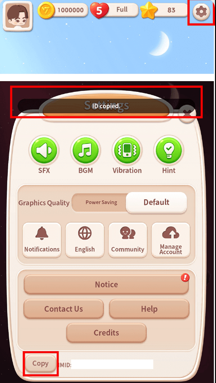 点击大厅右上方的设置。复制设置窗口下方的IMID并确认通知。