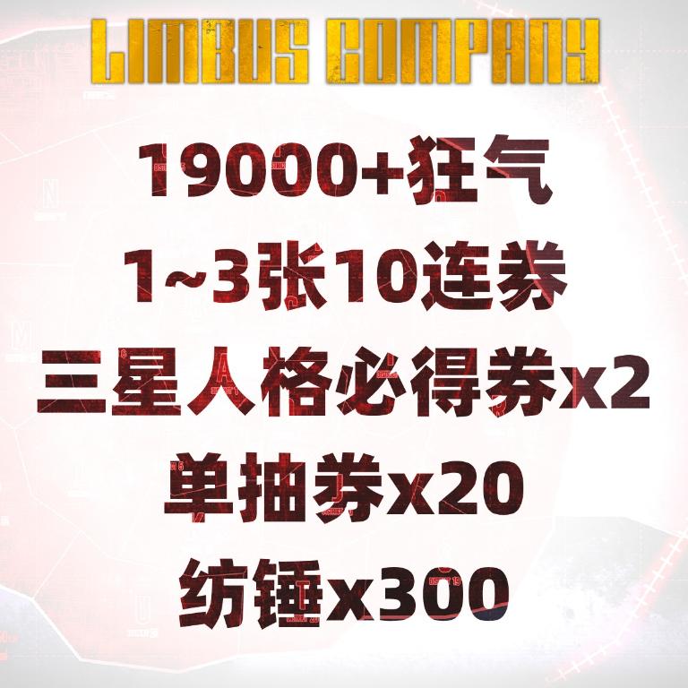 自选号6:19000+狂气+1~3张10连券+三星人格必得券x2+单抽券x20+纺锤x300