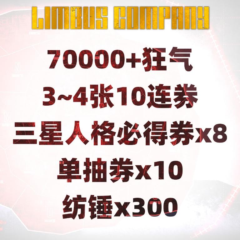 自选号3: 70000+狂气+2~4张10连券+三星人格必得券x7+单抽券x10+纺锤x300+必带单限定(绝望罗/憎恶唐/句点夫/句点宝)其中1个