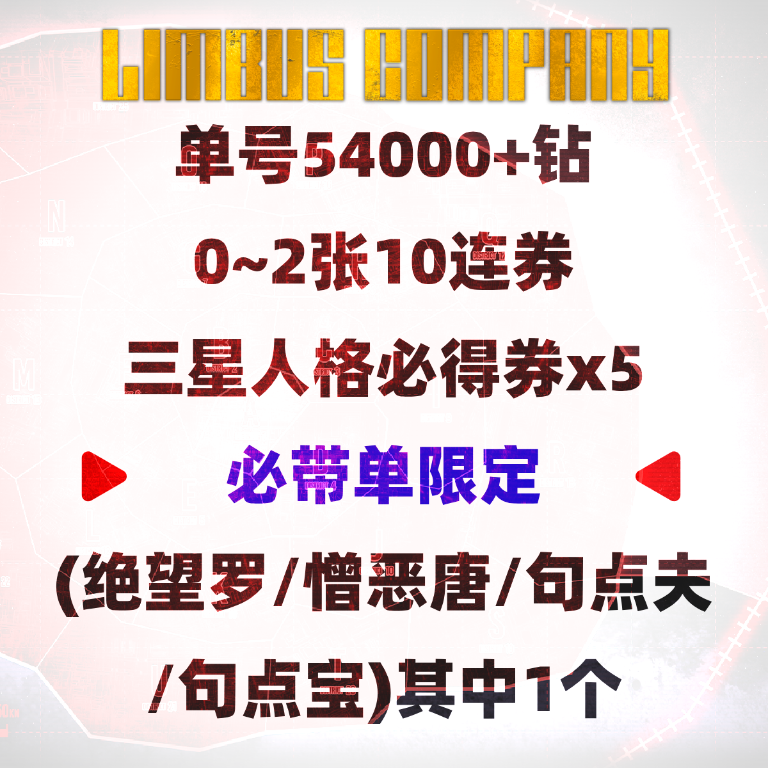 自选号3:54000+钻+0~2张10连券三星人格必得券x5+必带单限定(绝望罗/憎恶唐/句点夫/句点宝)其中1个