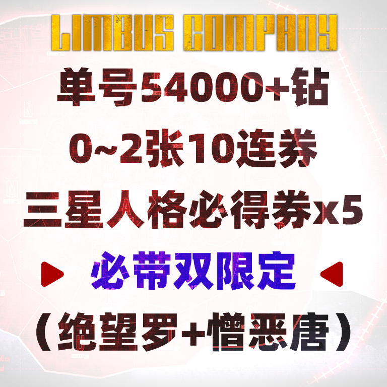 自选号9:54000+钻+0~2张10连券+三星人格必得券+必带双限定绝望罗+憎恶唐)