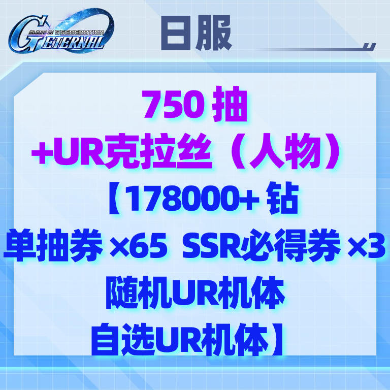 自选9(日服):750抽+UR克拉丝(人物)【178000+钻 单抽券×65 SSR必得券×3 随机UR机体 自选UR机体】
