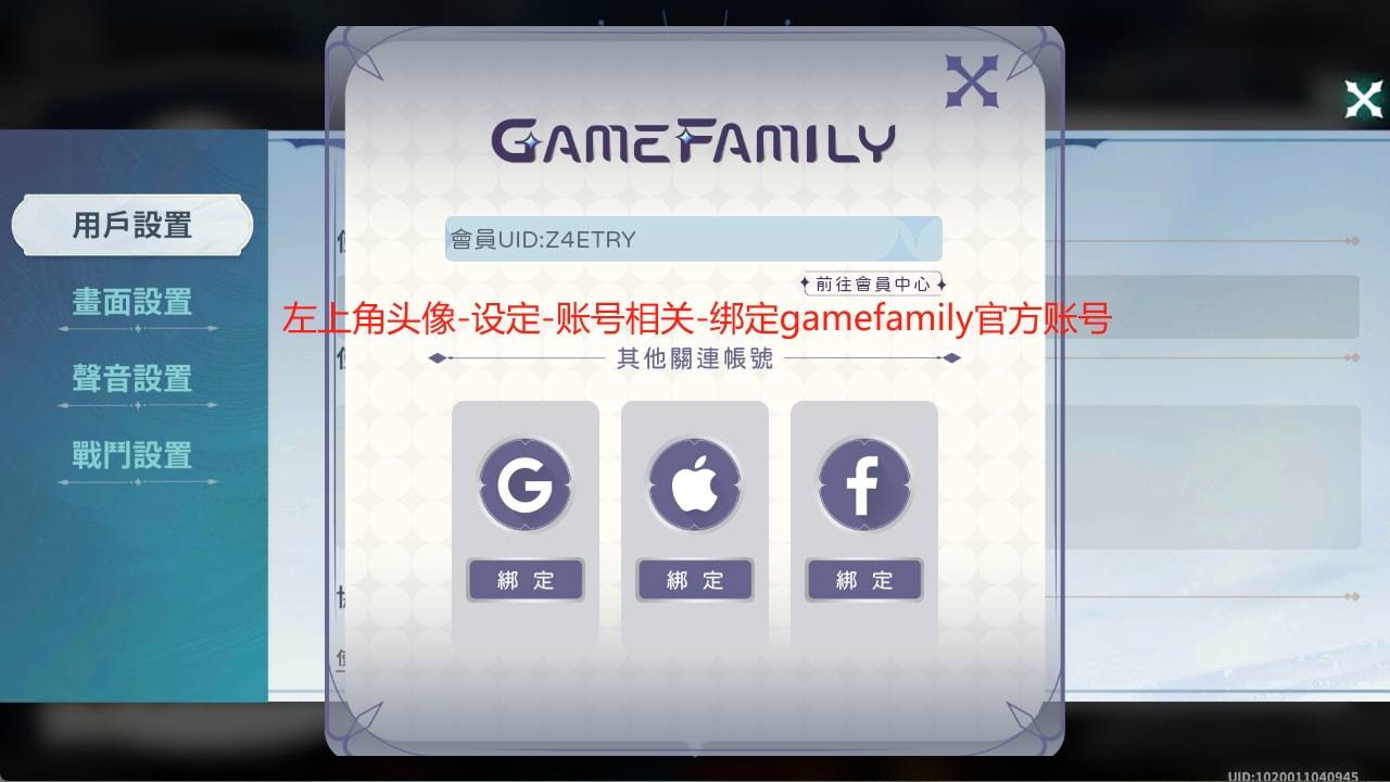 充值前请先绑定官方账号:左上角头像 > 设定 > 账号相关 > 绑定 GameFamily官方账号。