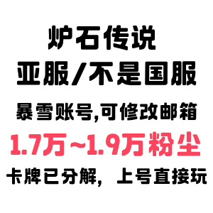 本商品为炉石传说国际服粉尘号,暴雪账号登录,登录后请立刻修改邮箱,因未修改邮箱造成的损失,一律不售后!