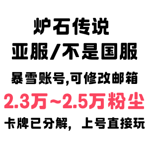 购买说明:炉石传说国际服粉尘号-(亚服)2.5万-2.7万粉尘来自官方渠道,支持极速发货、错误包换,如有需要可关注http://www.kardzvip.com/detail/1578294966.html