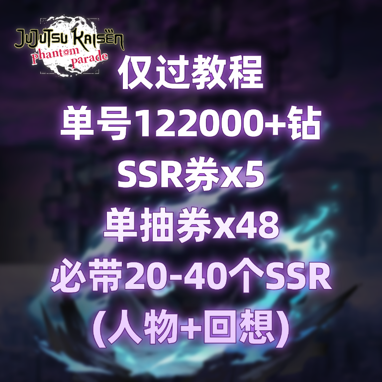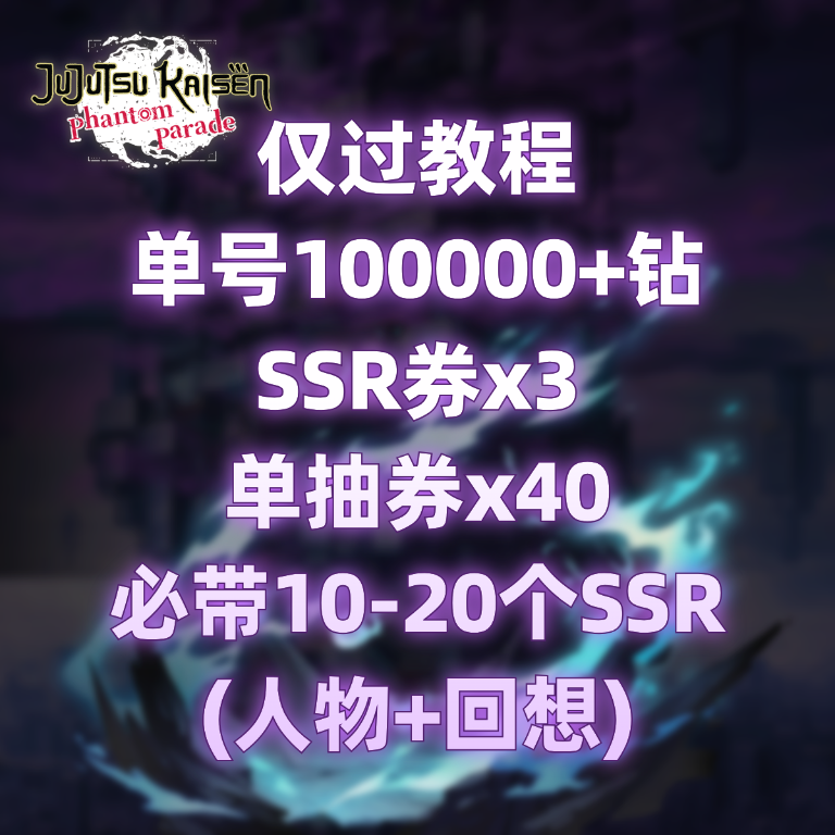 自选号5:仅过教程+70000钻+SSR券x1+必带【真正的咒术】两面宿傩+4-10个SSR(人物+回想)