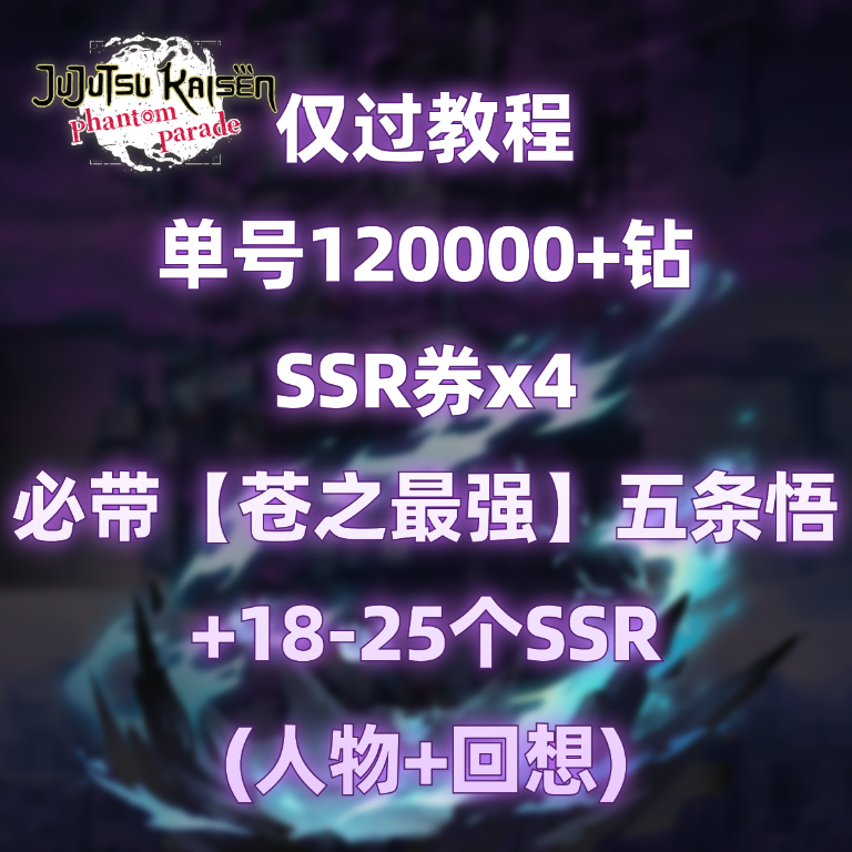 自选号20:仅过教程+120000钻+SSR券x5+必带【苍之最强】五条悟+18-25个SSR(人物+回想)