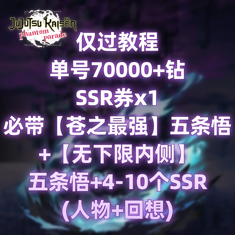 自选号6:仅过教程+70000钻+SSR券x1+必带【无下限的内侧】五条悟+4-10个SSR(人物+回想)