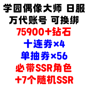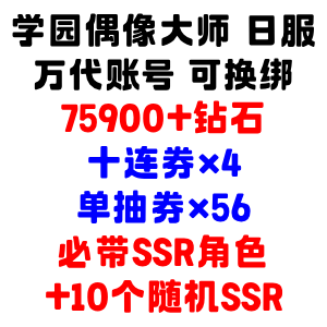 自选号4:75900+钻+十连券x4+单抽券x56+必带SSR角色+7个随机SSR
