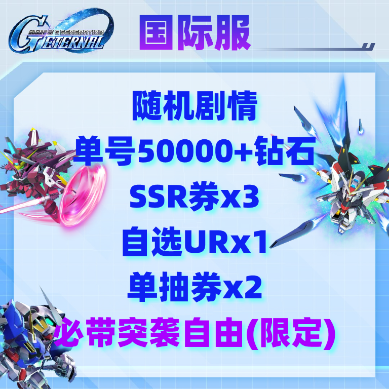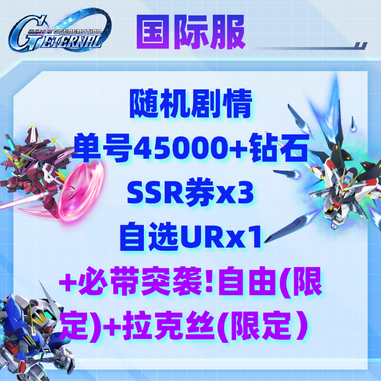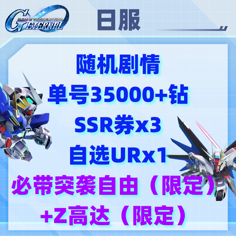 自选36(国际服):随机剧情单号35000+钻+SSR券x3+自选URx1+必带突袭自由(限定定)+Z高达(限定)