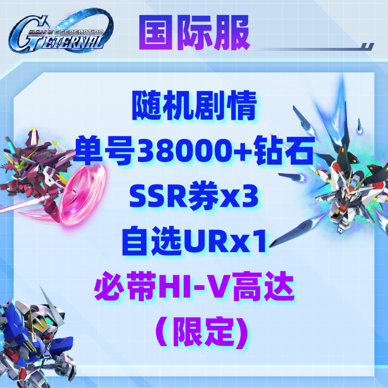 自选29(国际服):随机剧情单号38000+钻+SSR券x3+自选URx1+必带HI-V高达(限定)