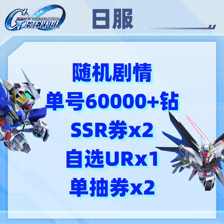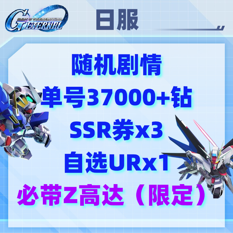 自选39(日服):随机剧情单号37000+钻+SSR券x3+自选URx1+必带Z高达(限定)