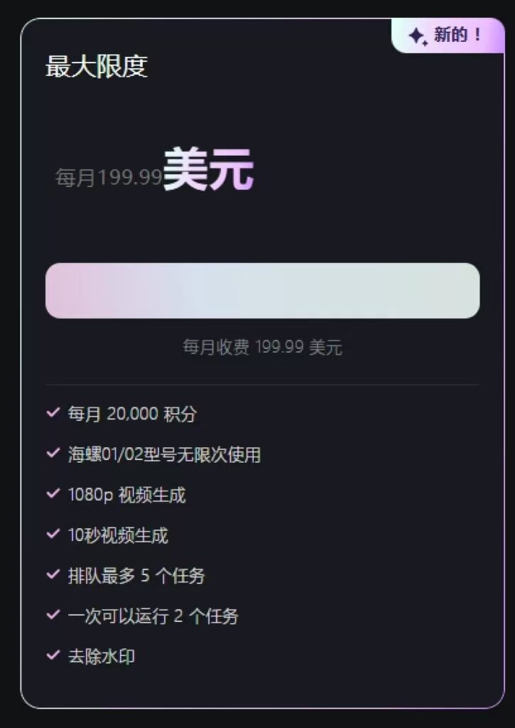 购买说明:Hailuo Ai 独享账号-有水印非会员来自官方渠道,支持极速发货、错误包换,如有需要可关注http://www.kardzvip.com/detail/1578298161.html