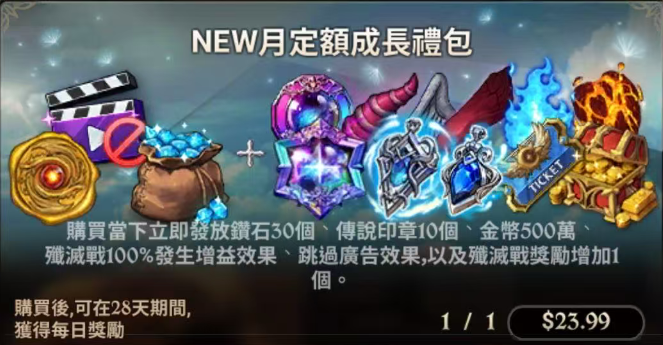kardz官网 > 七大罪:光与暗的交战(国际服)代充-NEW月定額成長禮包